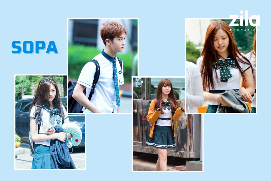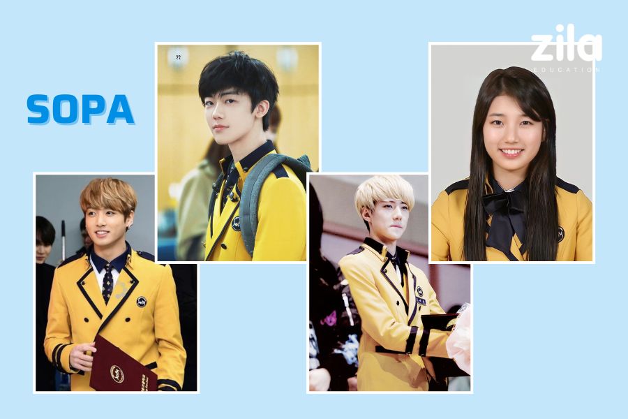 Nếu là fan K-Pop, thì chắc hẳn bạn đã biết bộ đồng phục học sinh màu vàng tươi và điểm xuyến thêm màu xanh biển ở cổ áo của trường Trung học Nghệ thuật Biểu diễn Seoul. Đây là một ngôi trường cấp 3 chuyên về nghệ thuật (hát, nhảy, diễn xuất…) tại Hàn Quốc. Vì vậy, phần lớn idol đều theo học và tốt nghiệp từ ngôi trường này. Nhờ vậy mà bộ đồng phục của SOPA rất dễ nhận biết và nổi tiếng ở quốc gia này.